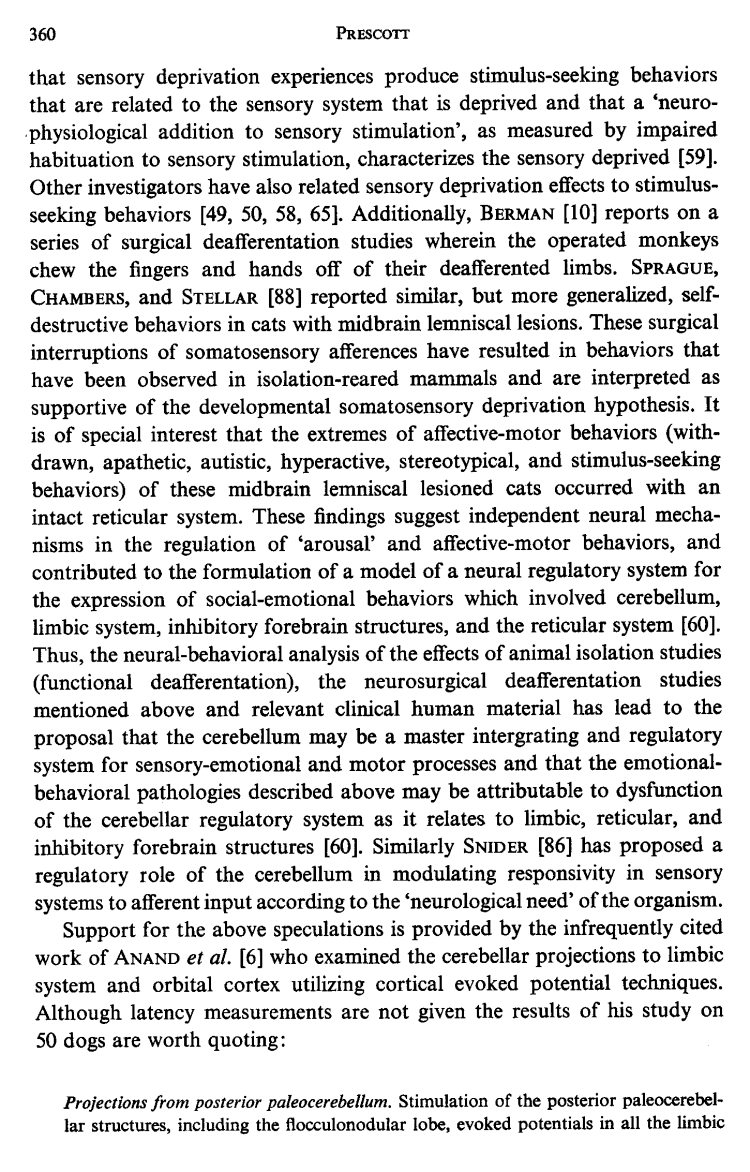 EARLY SOMATOSENSORY DEPRIVATION AS AN ONTOGENETIC PROCESS IN THE ABNORMAL DEVELOPMENT OF THE BRAIN AND BEHAVIOR.